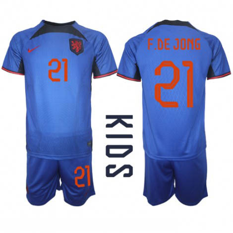 Kids Nederland Frenkie de Jong #21 Uit tenue WK 2022 Korte Mouw (+ Korte broeken)