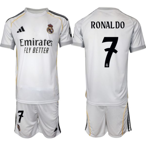 Real Madrid 2025/26 thuisshirt, Het Real Madrid Club de Fútbol thuisshirt voor het seizoen 2025-2026 is natuurlijk wit – maar dat is dan ook het enige “saaie” eraan. Voor het seizoen 2025-2026 combineert het shirt de witte basis met gele biezen, lichtgrijze accenten en zwarte logo’s. Aan beide zijkanten loopt een gele lijn naar beneden. De mouwboorden en de kraag zijn afgewerkt met fijne grijze strepen. Lichtgrijs wordt ook gebruikt voor het inzetstuk onder de armen en aan de zijkanten. De kleuren en mogelijk ook het ontwerp zijn een eerbetoon aan de Madrid-shirts uit de seizoenen 2009-10 en 2015-16.