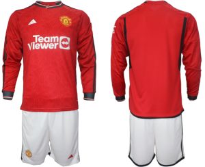 Manchester United Thuis tenue Voetbalshirts 2023-24 Lange Mouw (+ Korte broeken)
