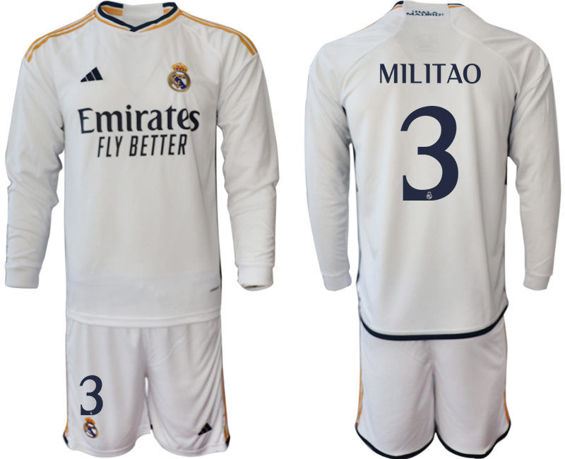 Real Madrid Eder Militao #3 Thuis tenue Mensen 2023-24 Lange Mouwen (+ Korte broeken) Voetbalshirts