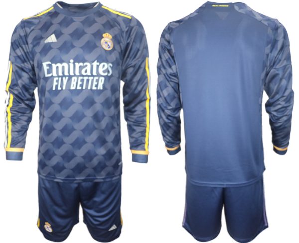 Real Madrid Uit tenue Mensen 2023-24 Lange Mouwen (+ Korte broeken) Voetbalshirts