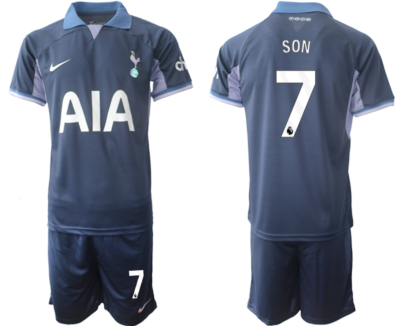 Tottenham Hotspur Son Heung-min #7 Uit tenue 2023-24 Mensen Korte Mouw (+ Korte broeken) Voetbalshirts